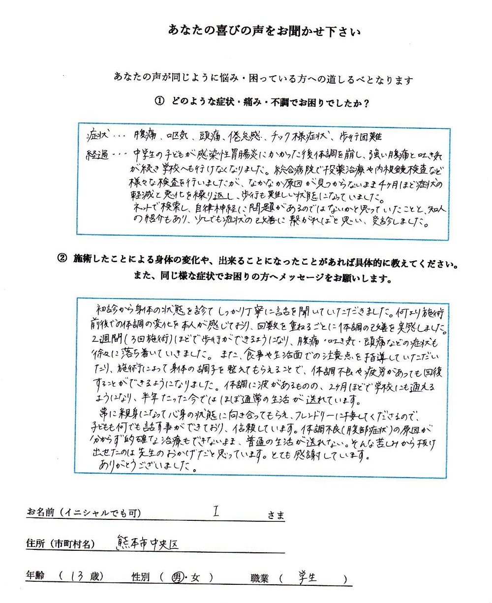感染性胃腸炎後の原因不明の症状 熊本市中央区 I様13歳学生